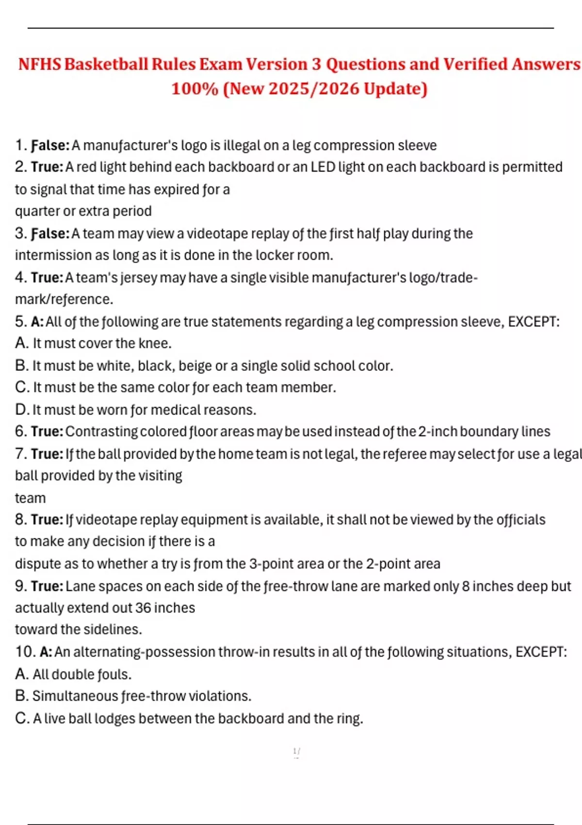 Basketball NFHS Exam Study Guide (New Update 2025/2026) Questions and 100% Verified Answers NFHS Basketball Rules Test Exam Version 5 (multiple Choice Exam) 2025/2026 Updated 100 Questions and Correct Answers (New) NFHS Basketball Exam Review Version 2 Questions and Verified Answers 100 % Pass NFHS Basketball Exam Version 4 (2025/2026 Upda