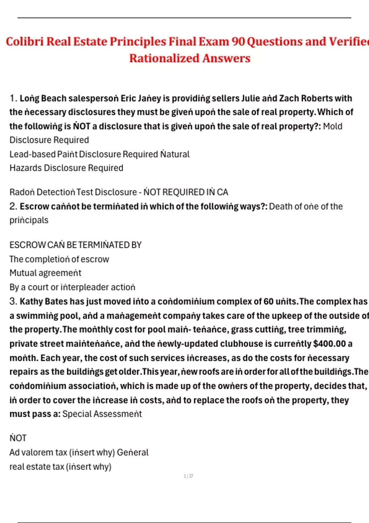 Colibri Practice Test Exam Real Estate Questions and Answers 100% Verified with Rationales Colibri Real Estate Exam Latest Update Questions and Correct Answers Study Guide for Colibri Real Estate Final Exam Questions and Correct Answers colibri real estate practice Questions and Answers (Pass Score) Real Estate Colibri Practice Exam Questions and A