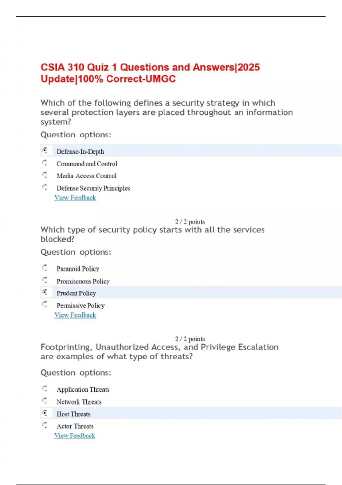 CSIA 310 Quiz 4 Questions and Answers CSIA 310 Quiz Submissions - Quiz 3: Modules 5 & 9|Questions and Answers CSIA 310 Quiz Submissions - Quiz 2: Modules 3 & 4 CSIA 310 Quiz 1 Questions and Answers