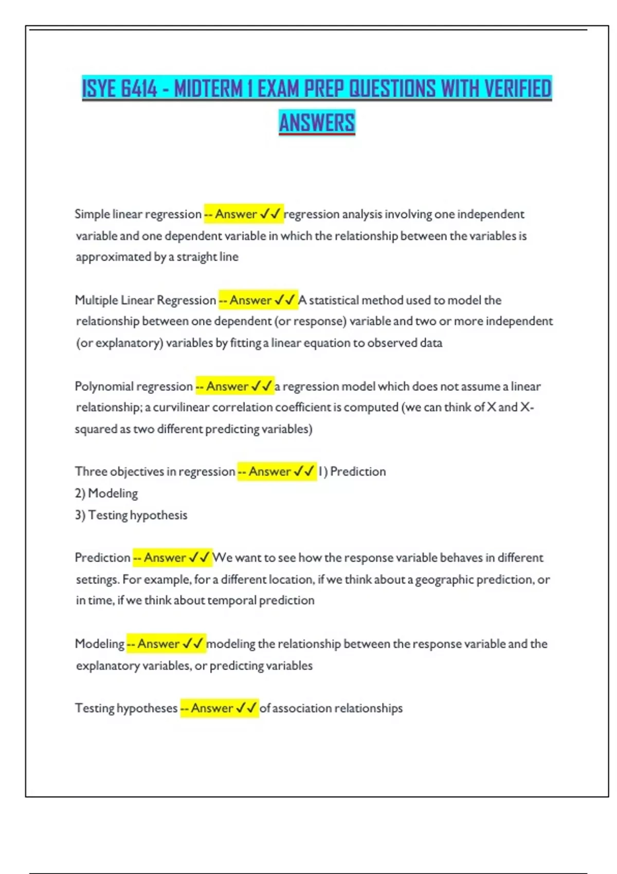 ISYE 6414 MIDTERM EXAM QUESTIONS WITH VERIFIED SOLUTIONS