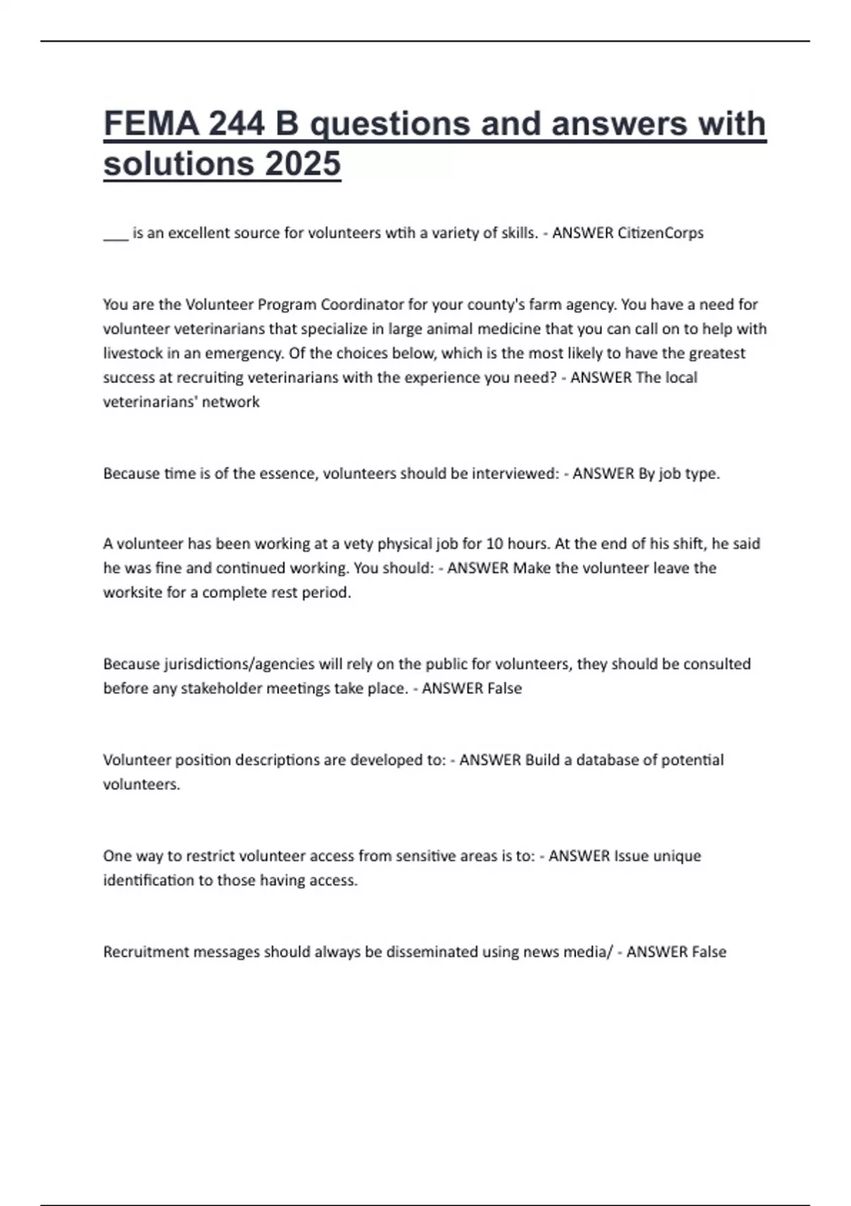 FEMA 244 B EXAM PACKAGE DEAL QUESTIONS AND ANSWERS WITH VERIFIED SOLUTIONS UPDATED 2025