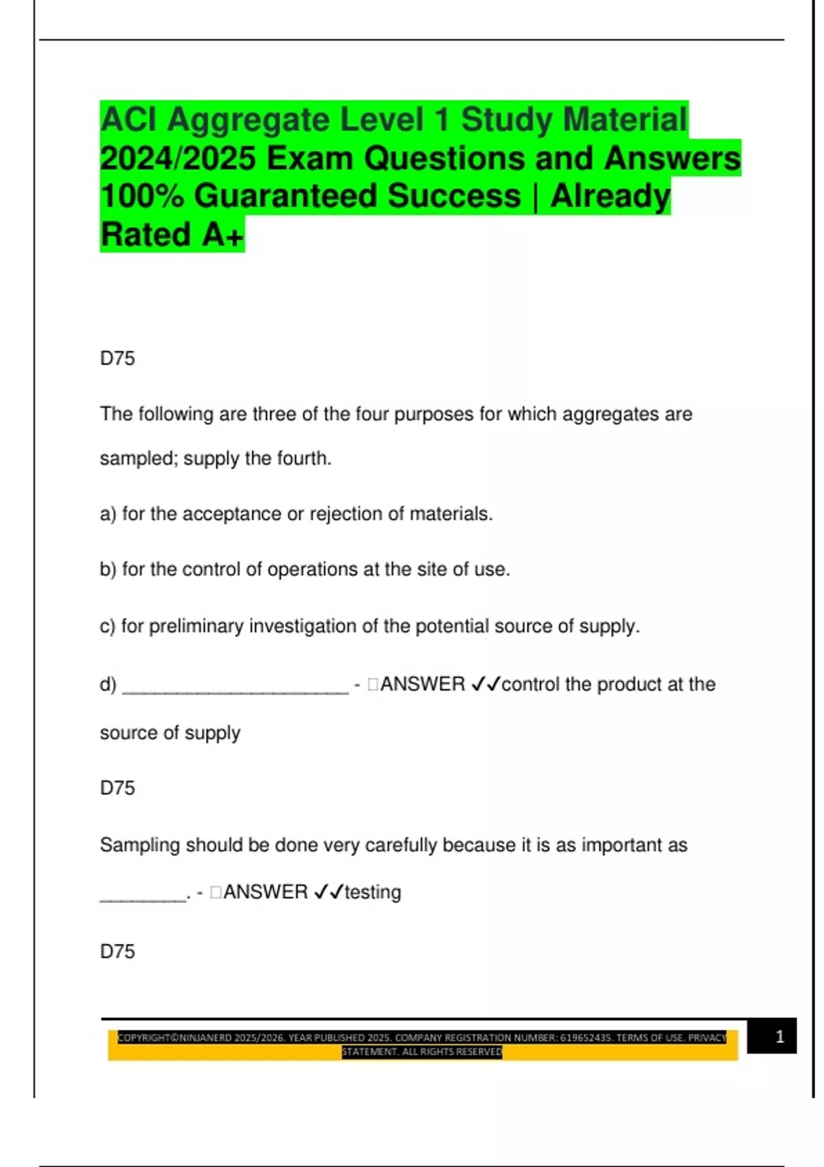 ACI Aggregate Level 1 Study Material 2024/2025 Exam Questions and Answers 100% Guaranteed Success | Already Rated A+
