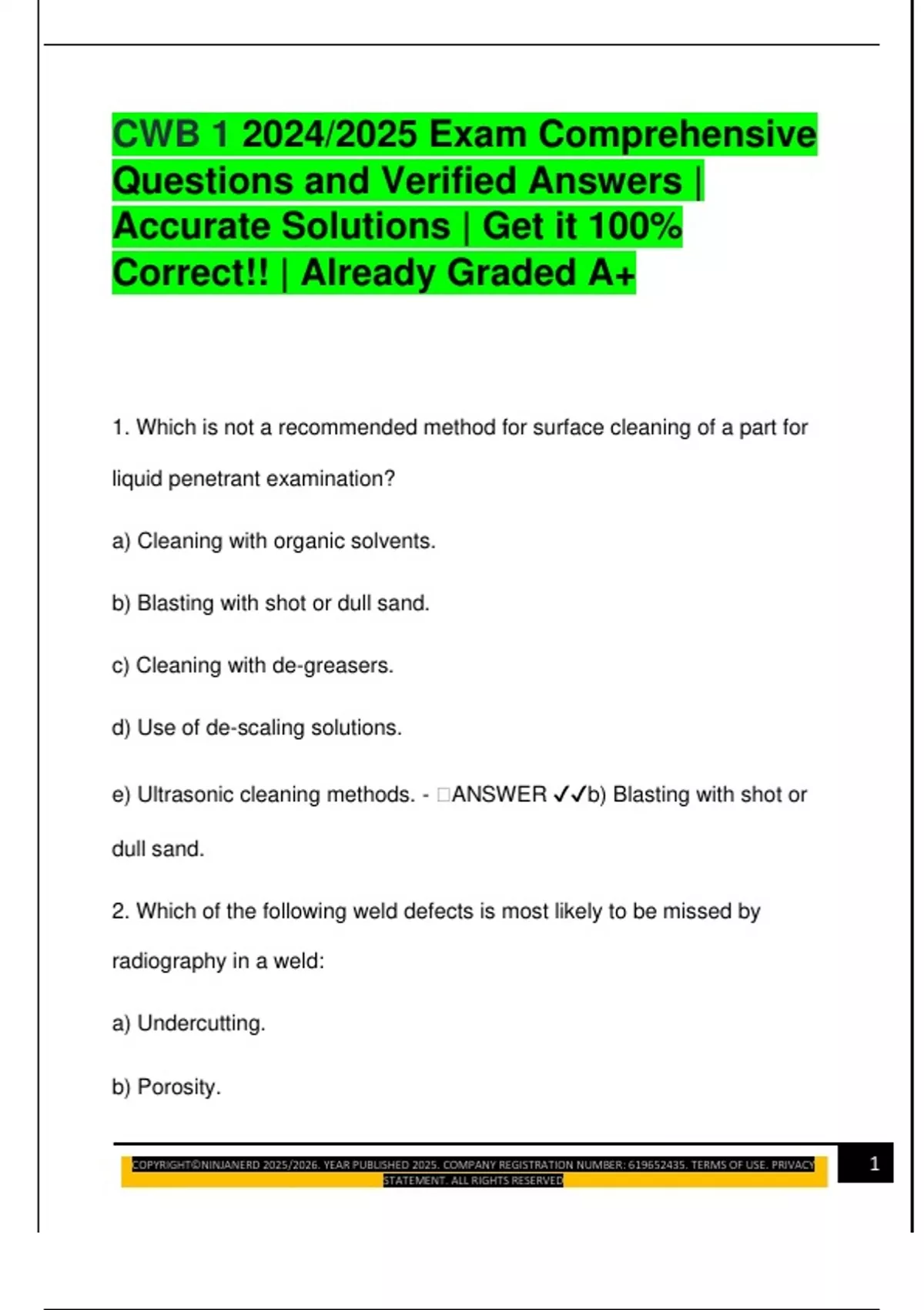 CWB 1 2024/2025 Exam Comprehensive Questions and Verified Answers | Accurate Solutions | Get it 100% Correct!! | Already Graded A+