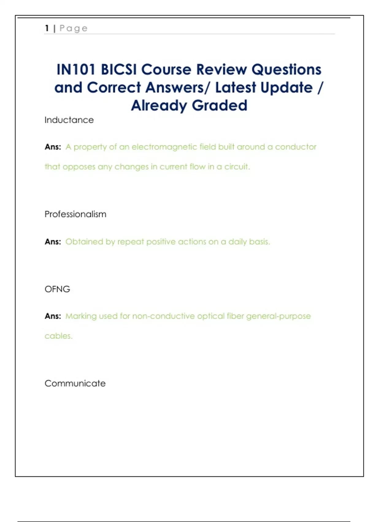 BICSI Questions and Correct Answers/ Latest Update / Already Graded