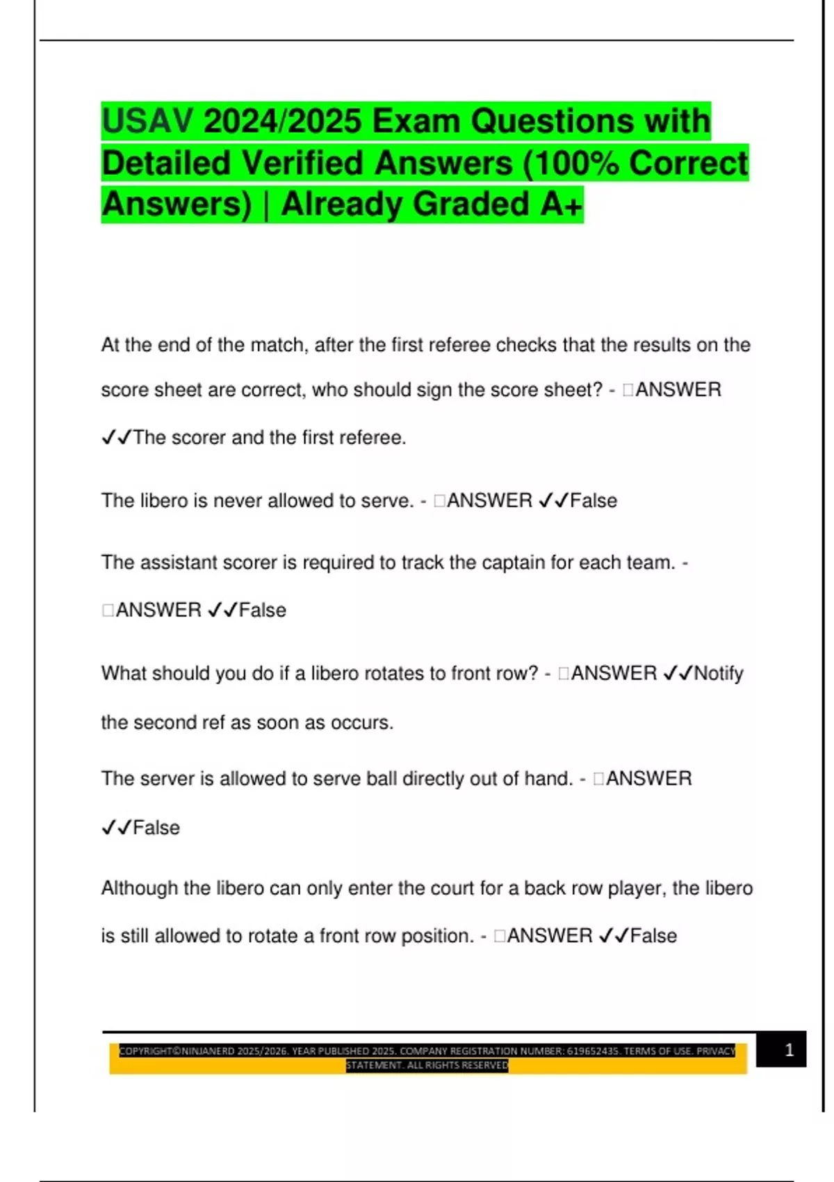 USAV Jr Scorer 2024/2025 Exam Questions and Answers | A+ Score Assured