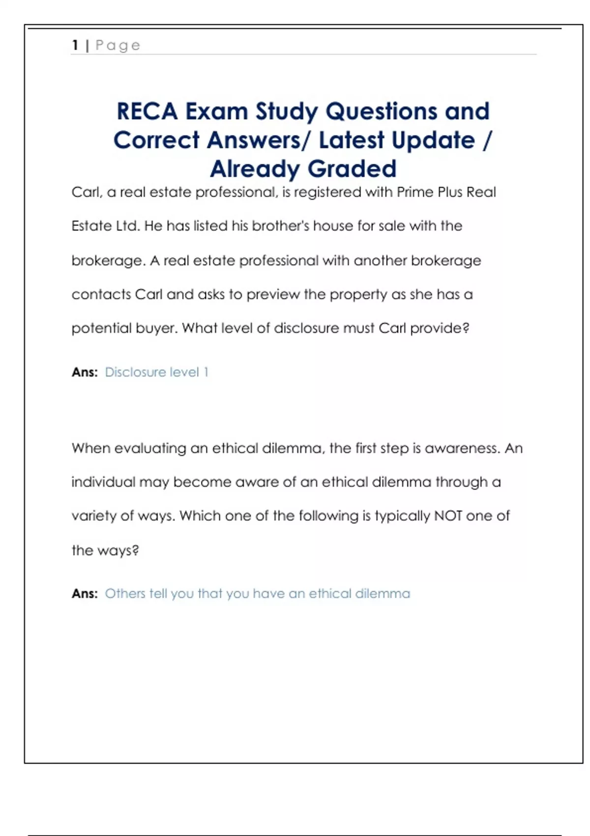 RECA Questions and Correct Answers/ Latest Update / Already Graded