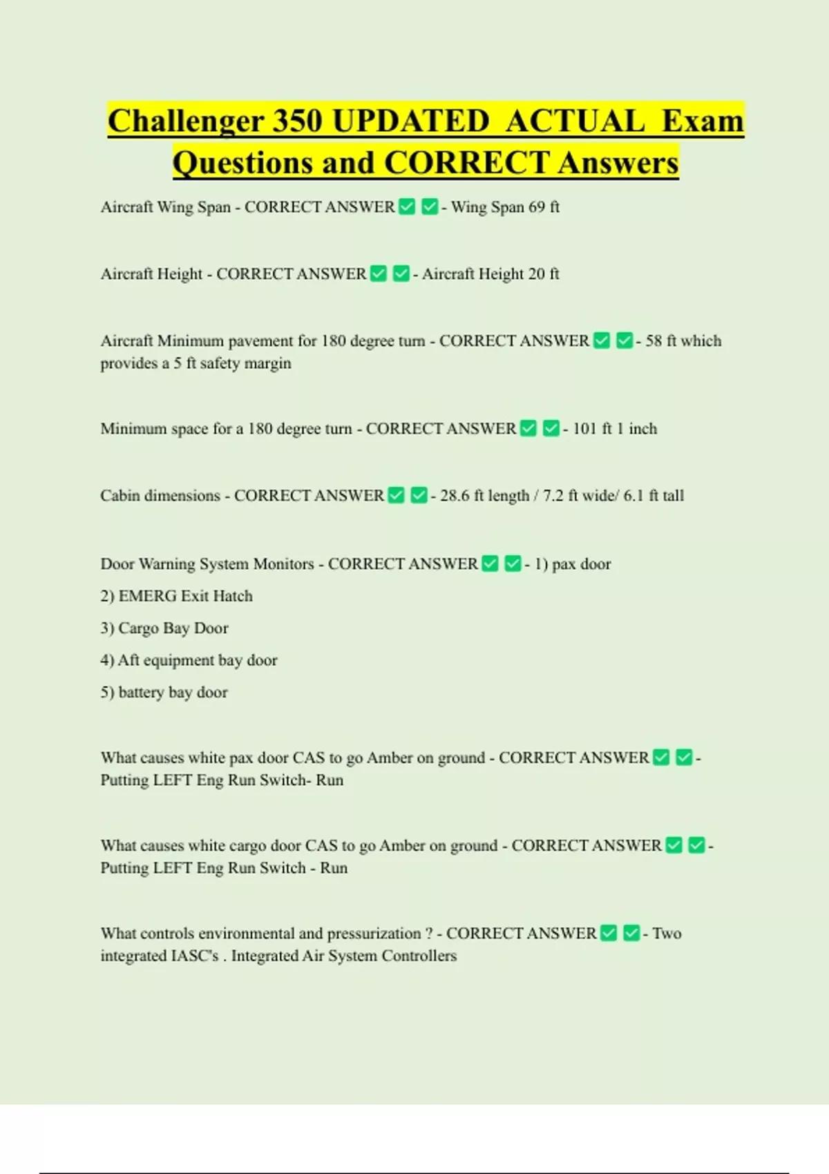 Challenger 350 Bundled Exam Questions WITH CORRECT Answers