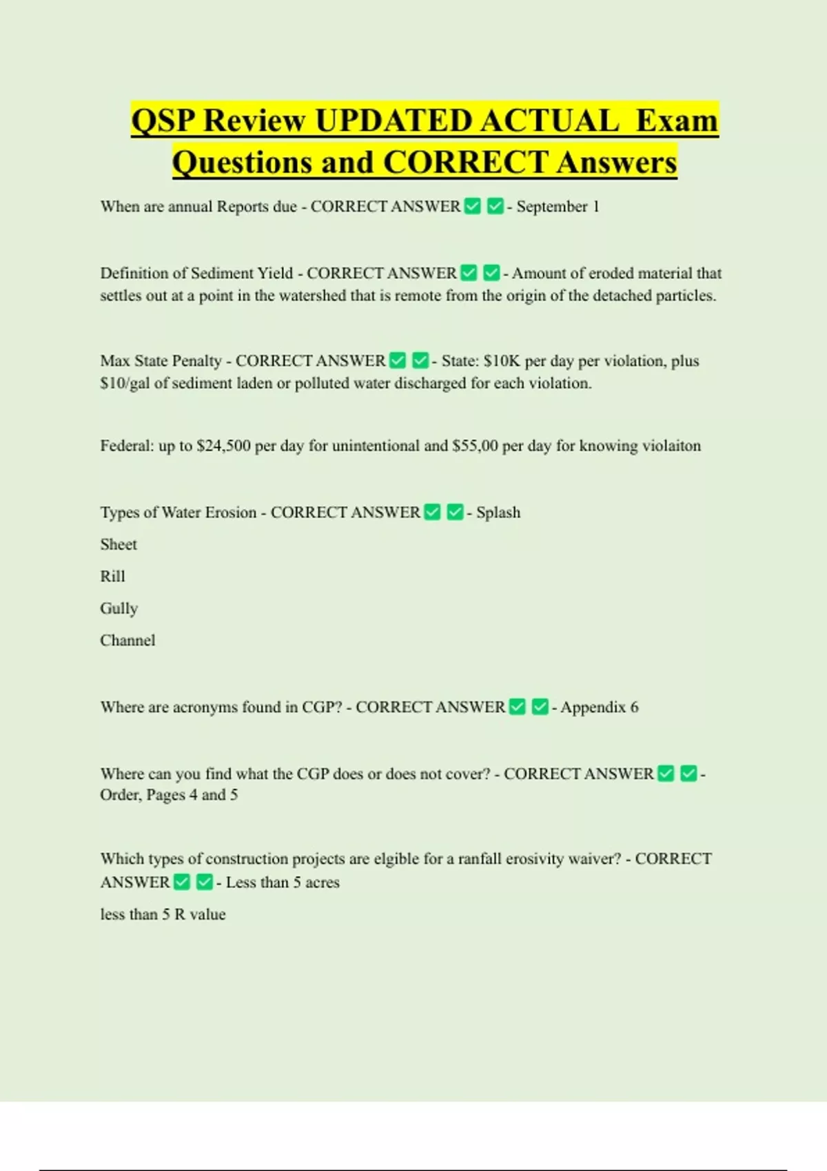 QSP Bundled Exam Questions WITH CORRECT Answers