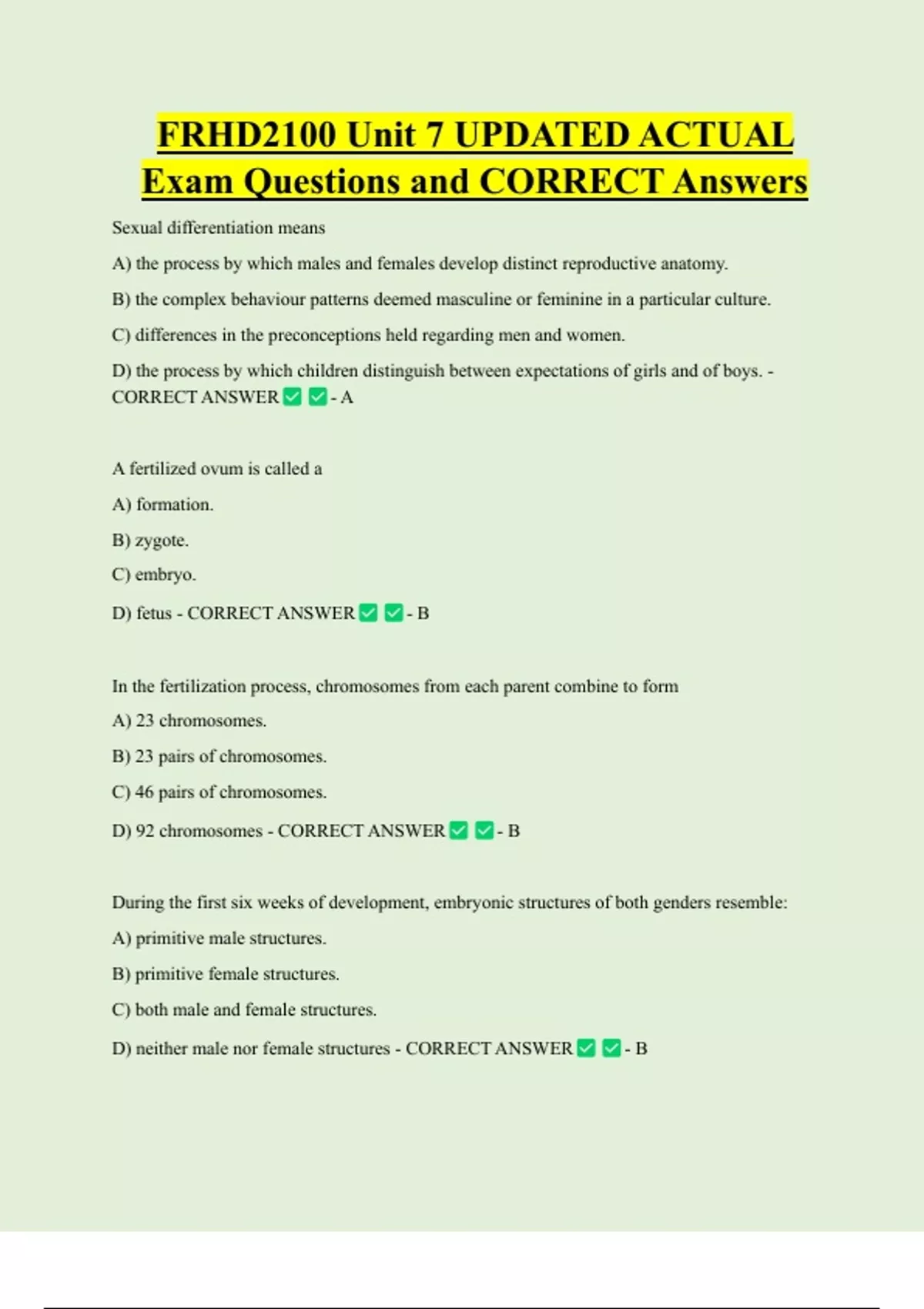 FRHD 2100 Bundled Exam Questions WITH CORRECT Answers