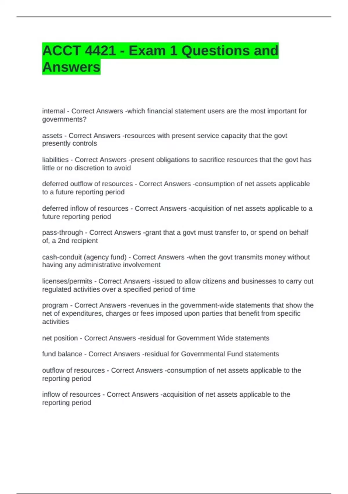 Gov ACCT 4421 Exam 1 Questions with Accurate Answers (Graded A)