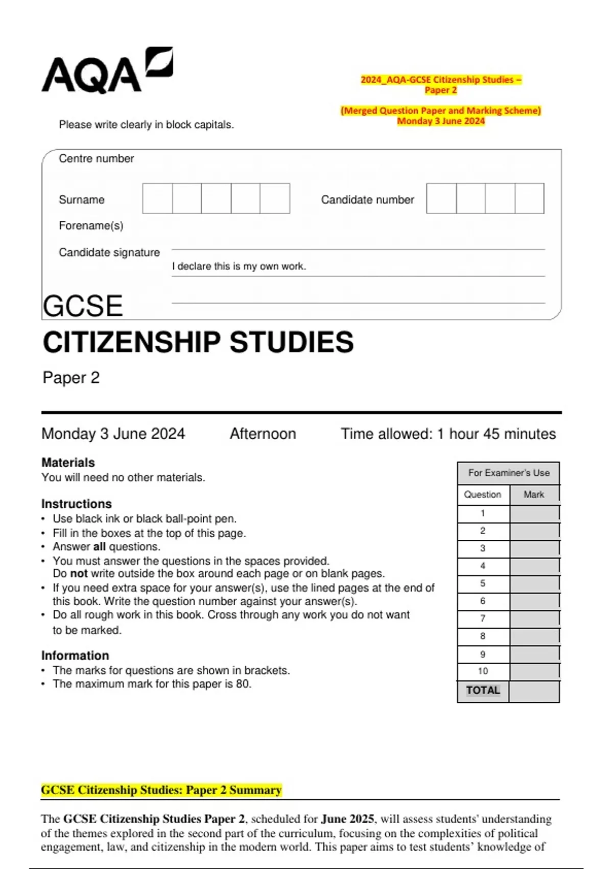 2024_AQA-GCSE Citizenship Studies – Paper 1 (Merged Question Paper and Marking Scheme) Tuesday 21 May 2024