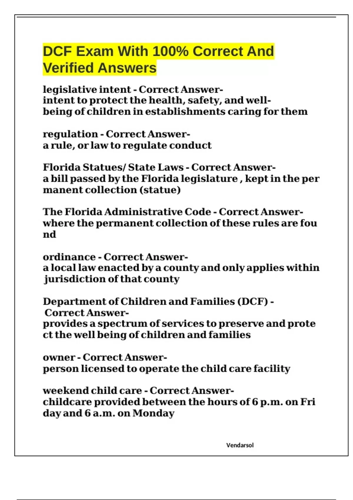 DCF Certification Exam With 100% Correct And Verified Answers DCF 40 Hour Training Exam 2025 With 100% Correct And Verified Answers DCF Certification exam Test - Rules and Regulations for Facilities with 100% correct and verified answers DCF Certification Exam Test Child Abuse And Neglect With 100% Correct And Verified Answers