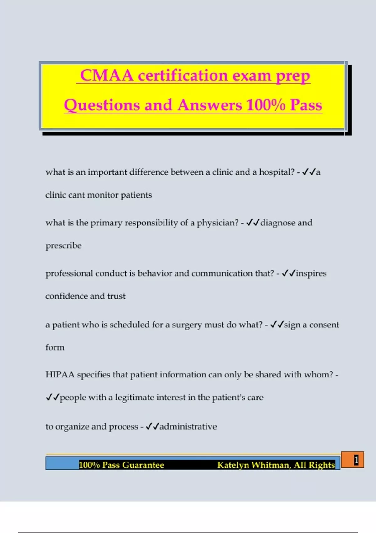 CMAA Certification Exam Questions and Answers 100% Pass