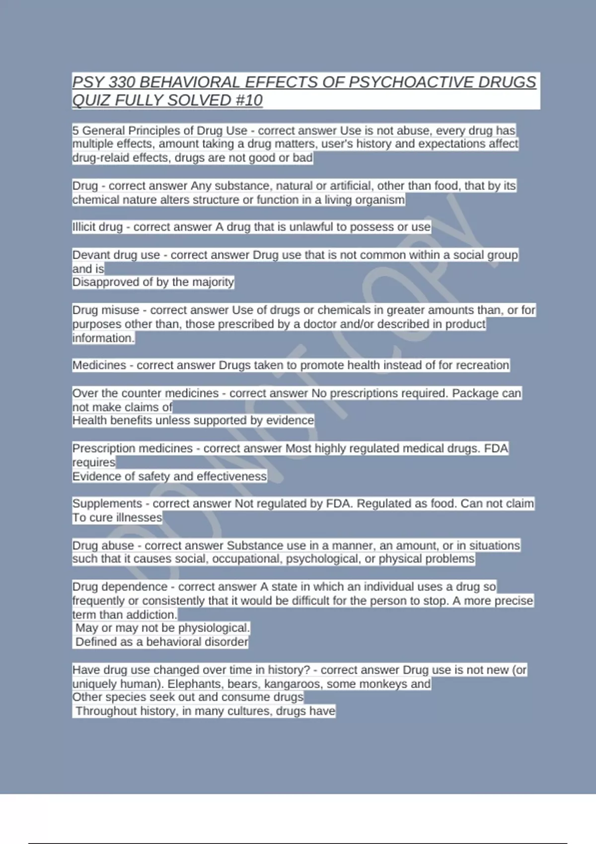 PSYC-330: Drugs & Behavior Exam Bundle With Questions And Answers Fully Updated And Guaranteed A+ 2025