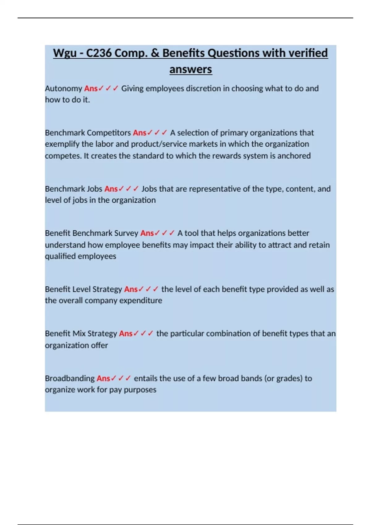 WGU c236 - Comp and Benefit Study Guide questions with verified answers