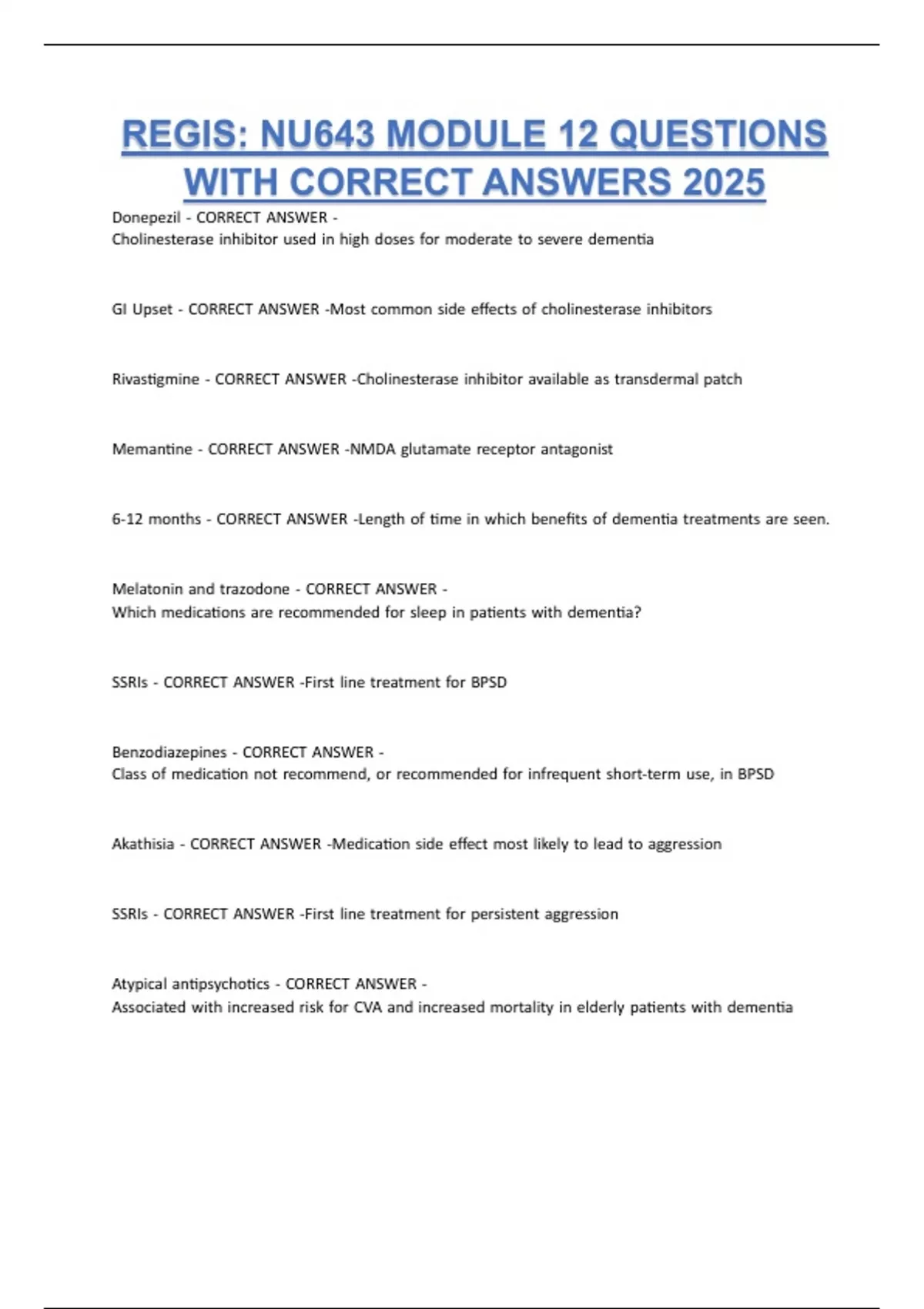 REGIS NU643 MODULE 12 QUESTIONS WITH CORRECT ANSWERS 2025