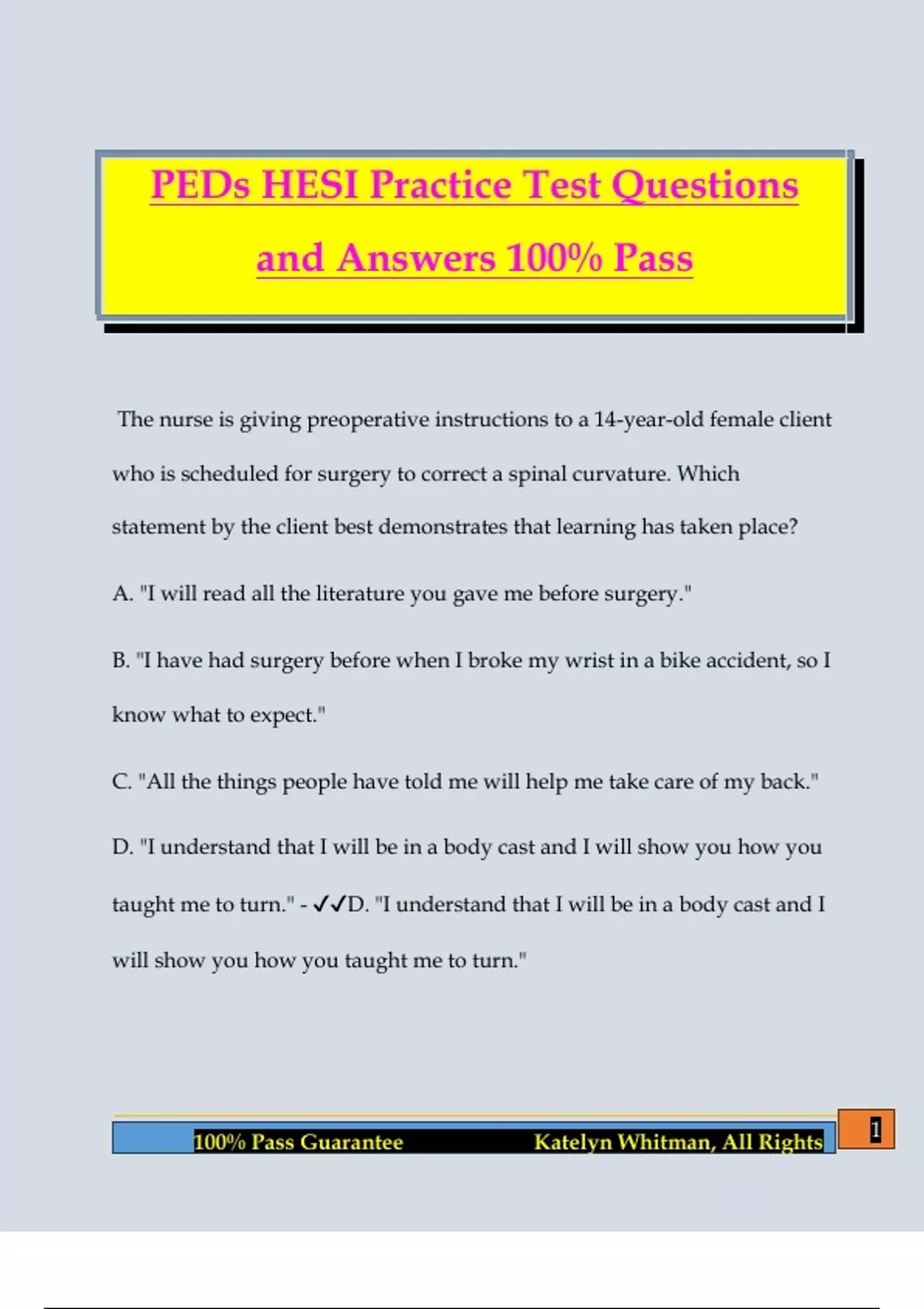 PEDs HESI Practice Test Questions and Answers 100% Pass