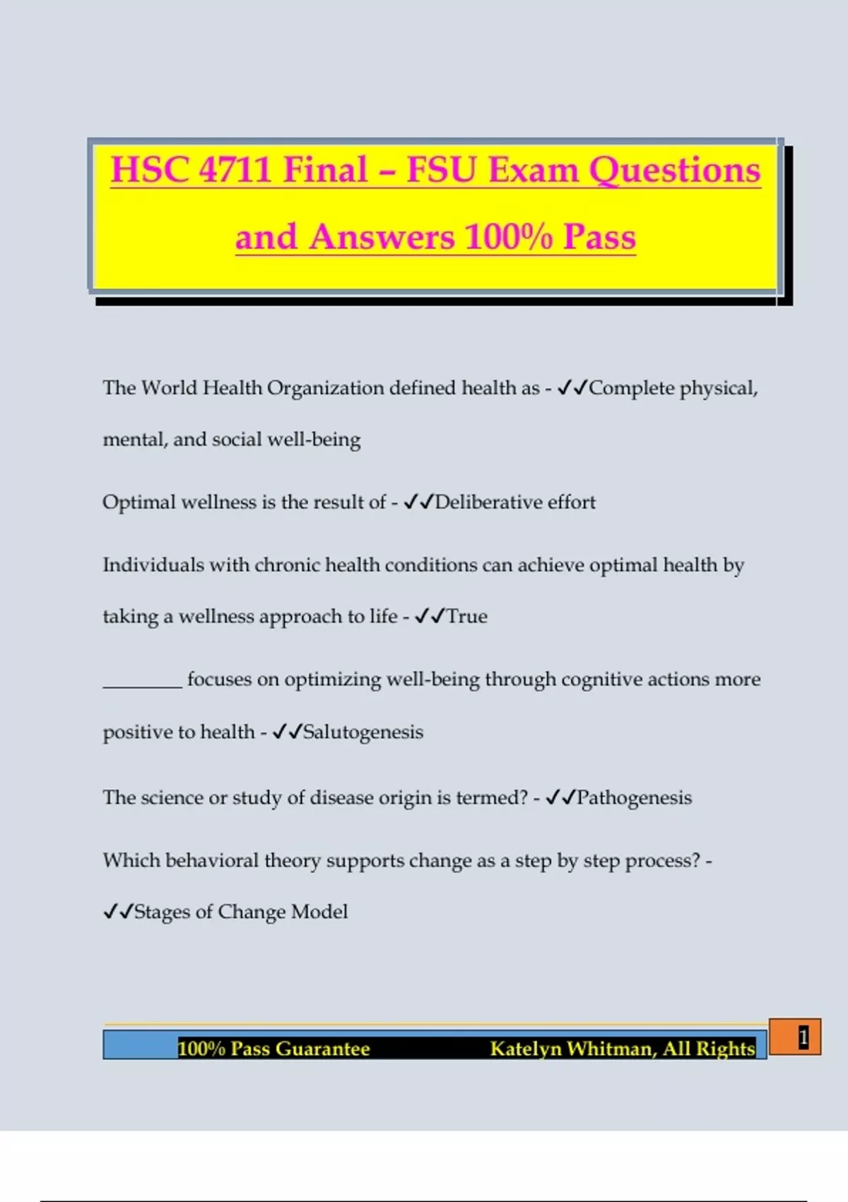 HSC4711 Wellness Midterm Exam Questions and Answers 100% Pass