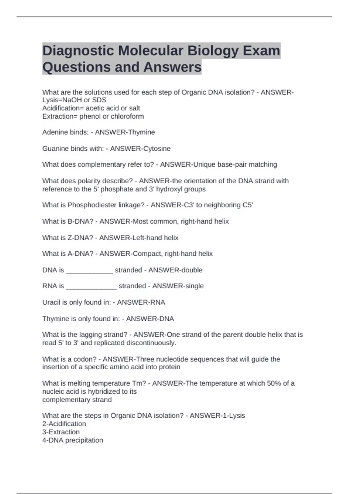 Molecular Diagnostics Final Exam Questions with Verified Answers