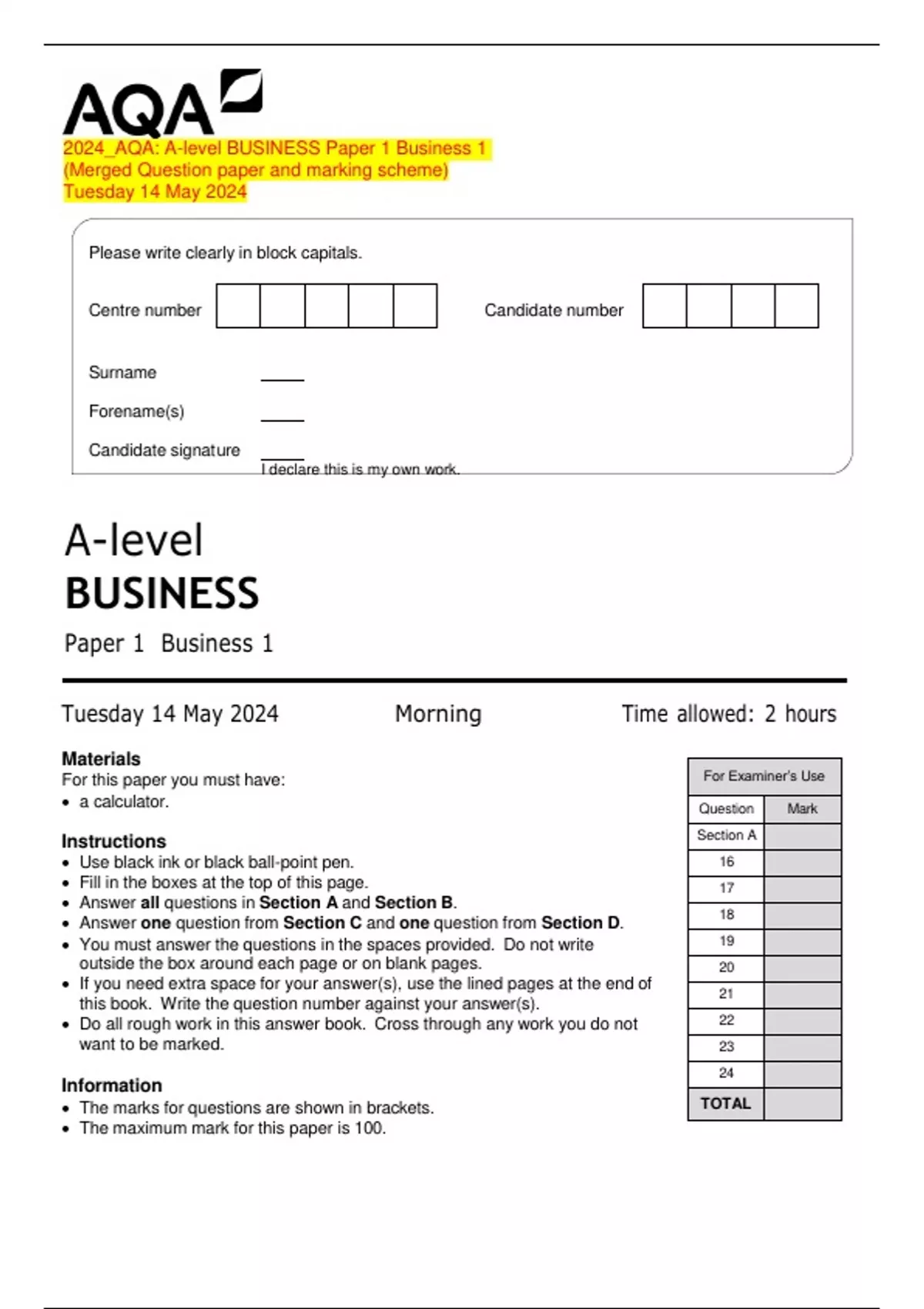 2024_AQA: A-level BUSINESS Papers 1, 2, & 3 (Merged Question paper and marking scheme)