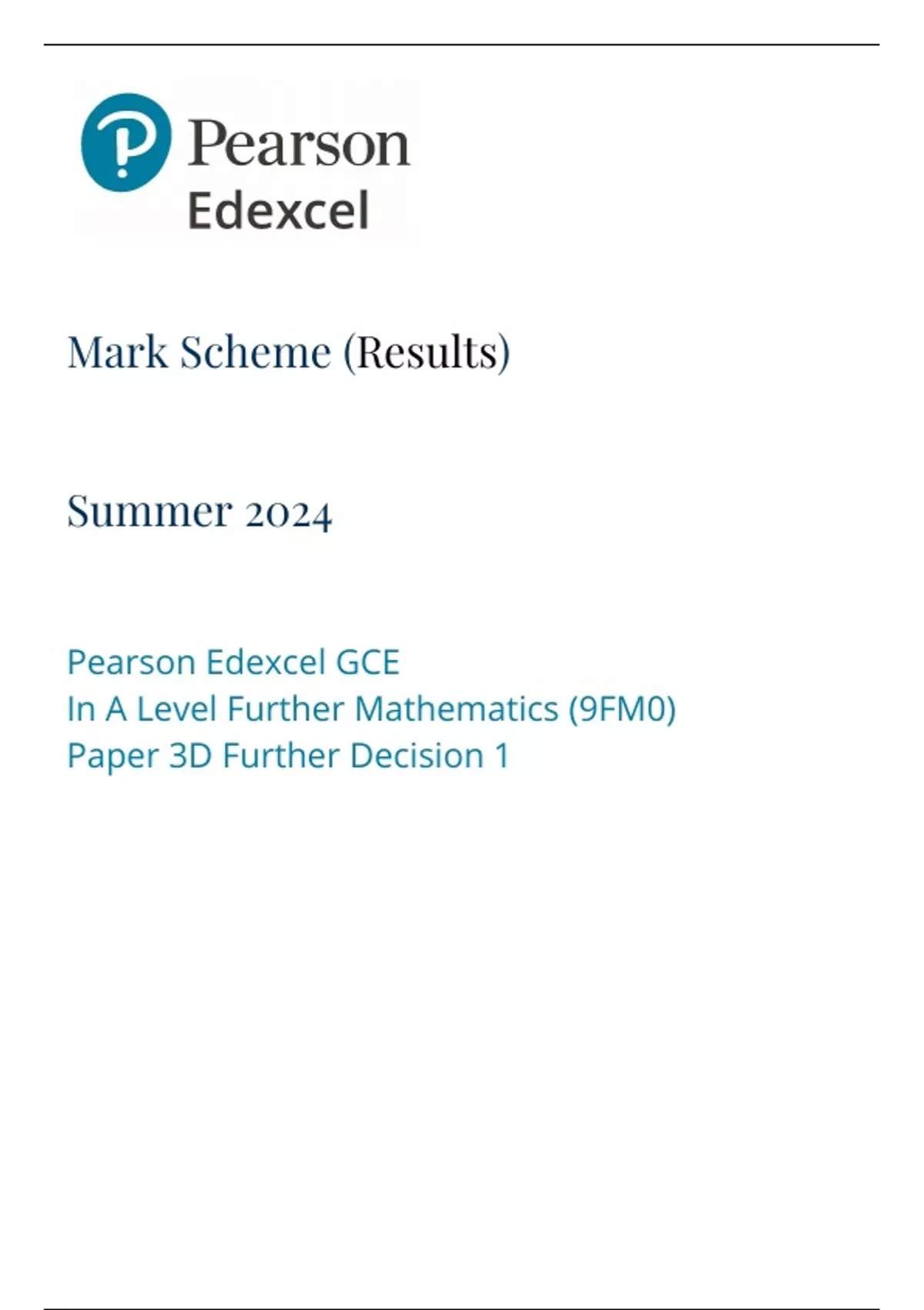 A-LEVEL EDEXCEL FURTHER MATHS JUNE 2025 PAPER 3D FURTHER DECISION MATHEMATICS QUESTION PAPER+MARKSCHEMES (9FM0/3D)