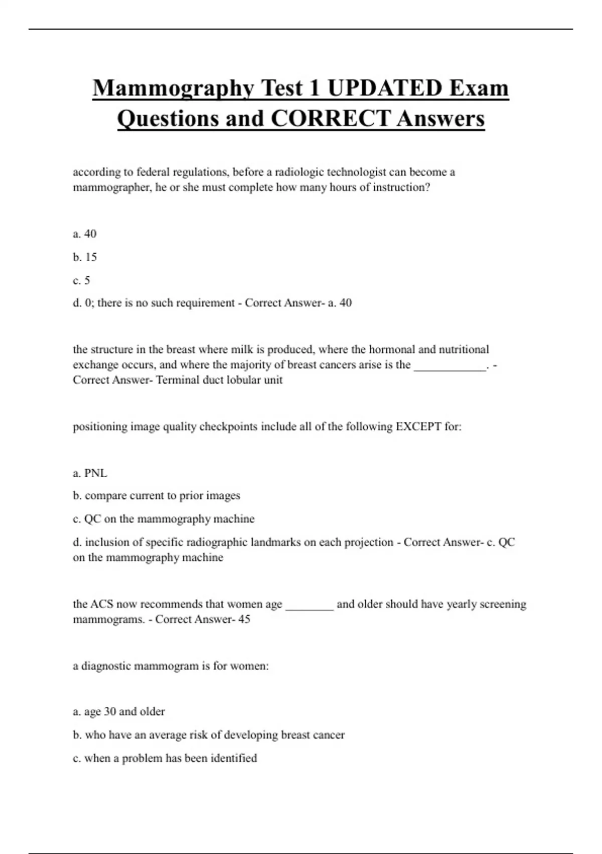 Mammography Bundled Exam Questions WITH CORRECT Answers