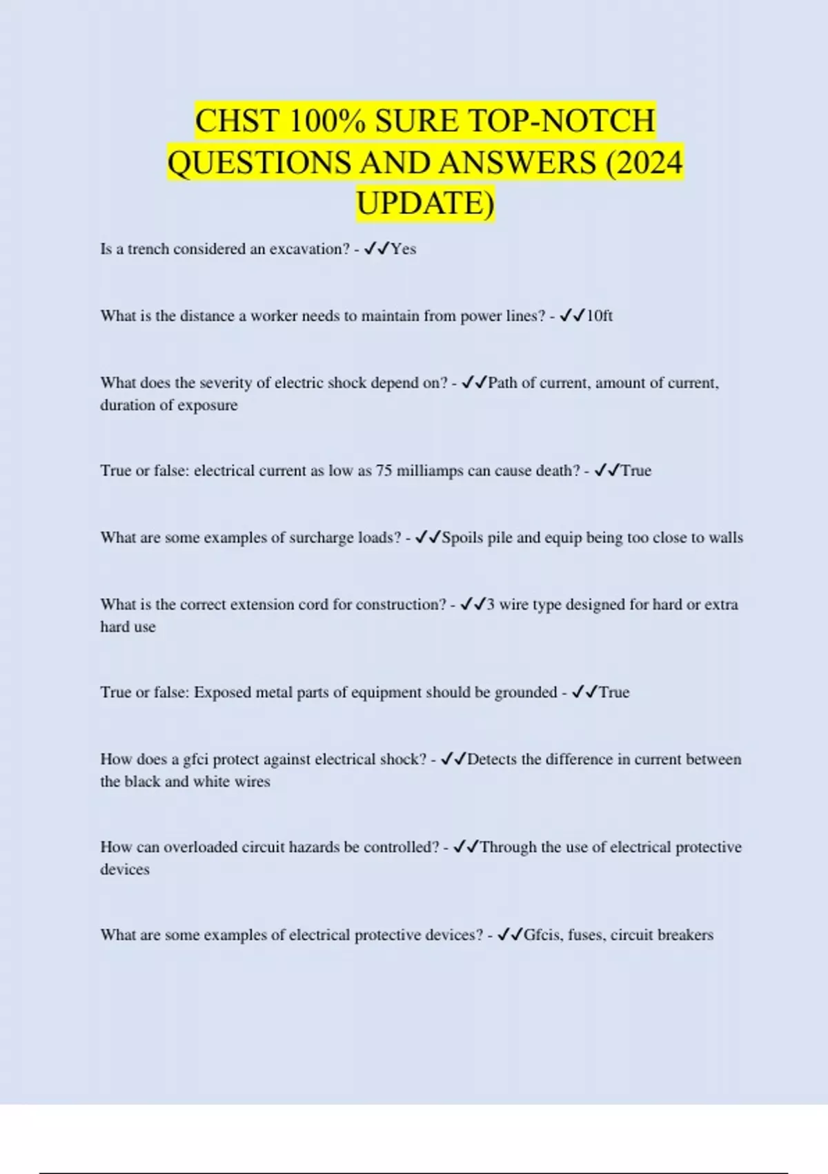 CHST Bundled Exam Questions WITH CORRECT Answers
