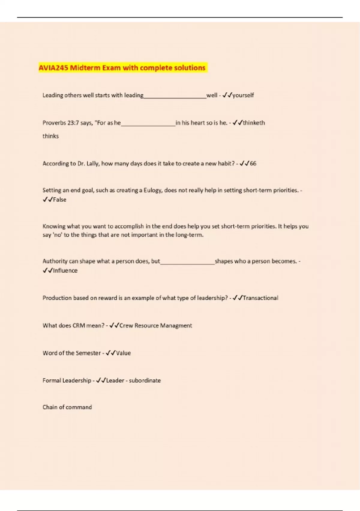 Package deal :::: AVIA Tets 2025 with 100% Correct Answers