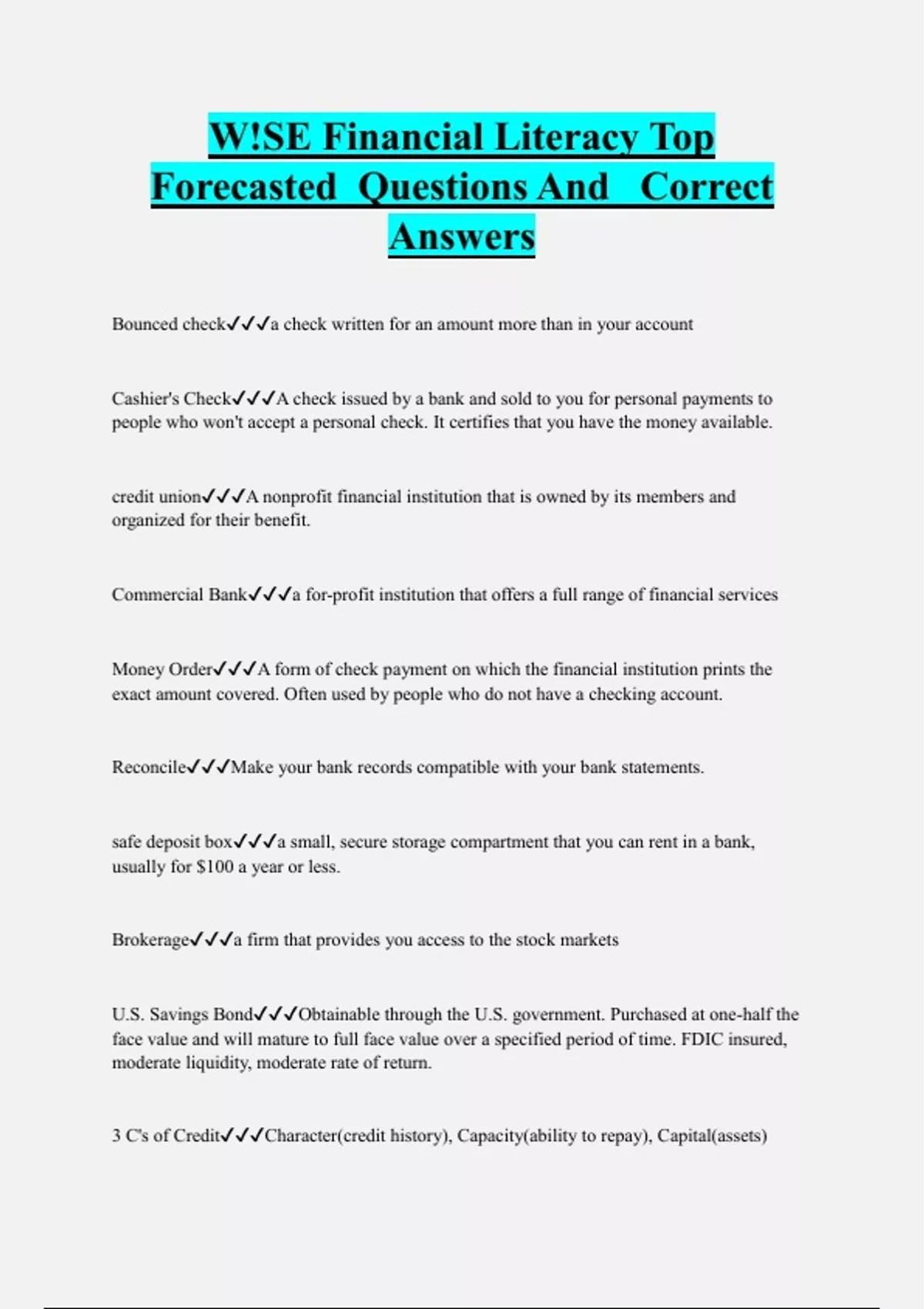Financial Literacy Bundled Exam Questions WITH CORRECT Answers