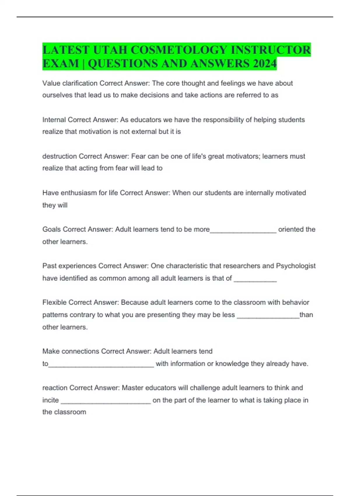 Bundle For Cosmetology Instructor Exam Questions and Answers All Correct