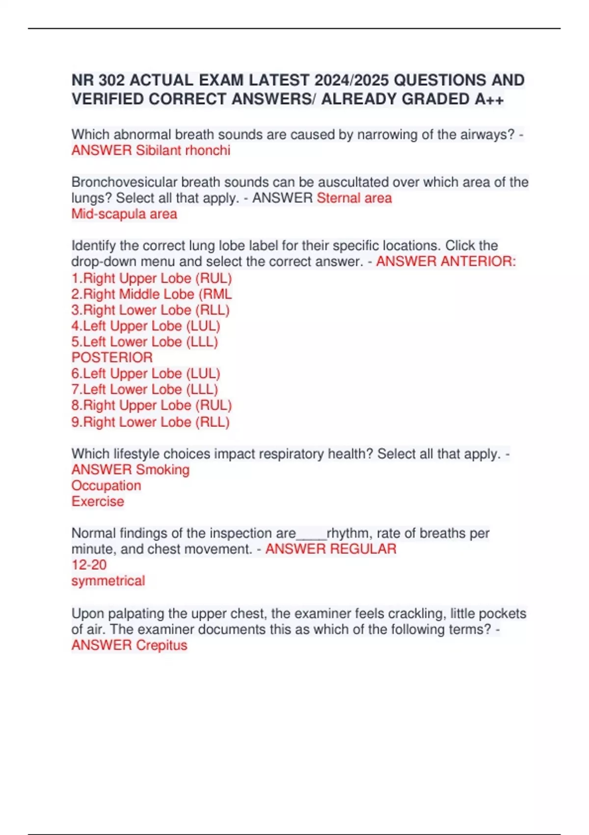 NR 302 FINAL EXAM 2025 WITH DETAILED QUESTIONS AND VERIFIED CORRECT ANSWERS/ ALREADY GRADED A++ NR 302 FINAL EXAM 2025 WITH DETAILED QUESTIONS AND VERIFIED CORRECT ANSWERS/ ALREADY GRADED A++