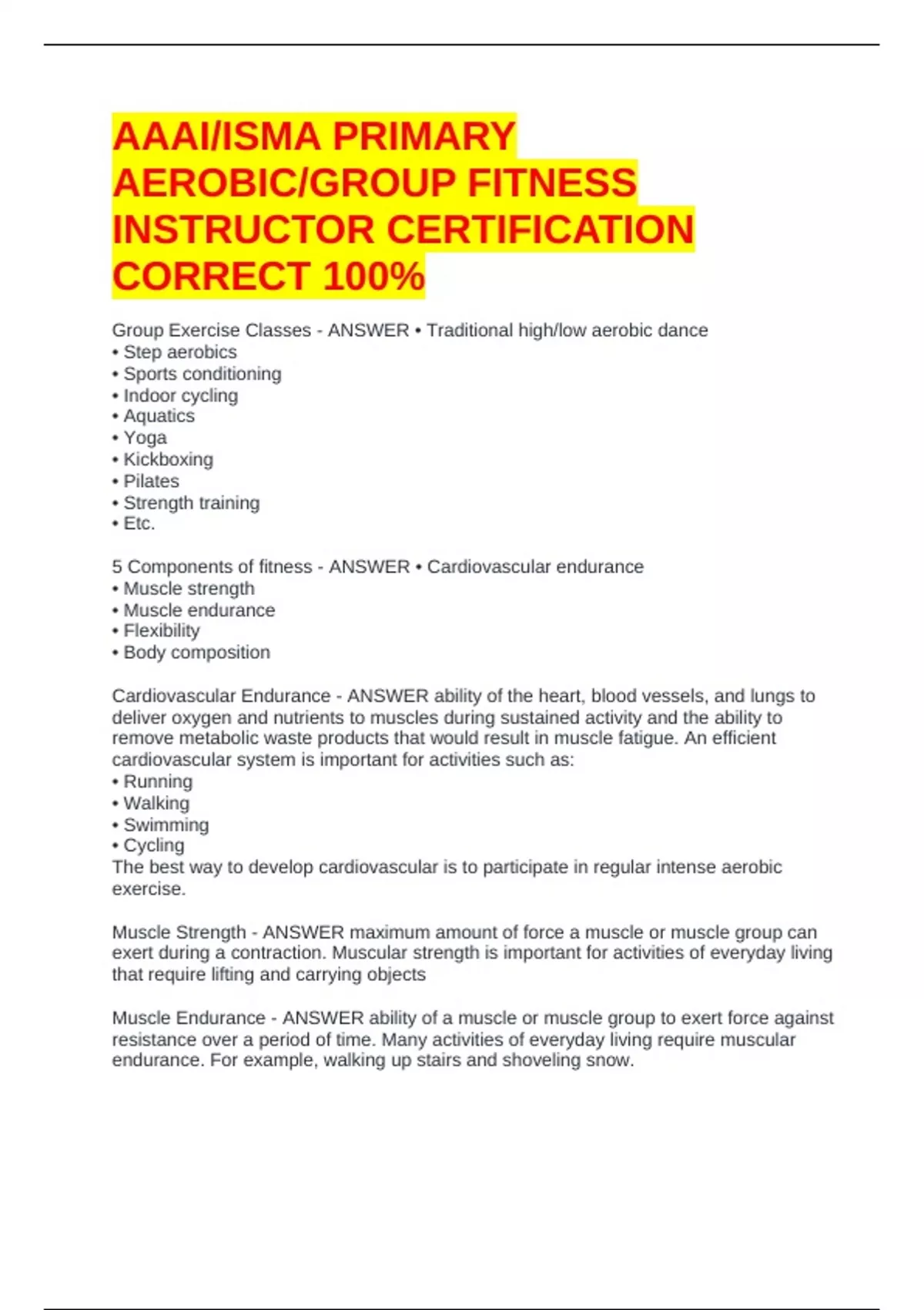 AAAI-ISMA PERSONAL TRAINER CERTIFICATION COMPLETE QUESTIONS & SOLUTIONS(RATED A+) COMPLETE EXAM BUNDLE