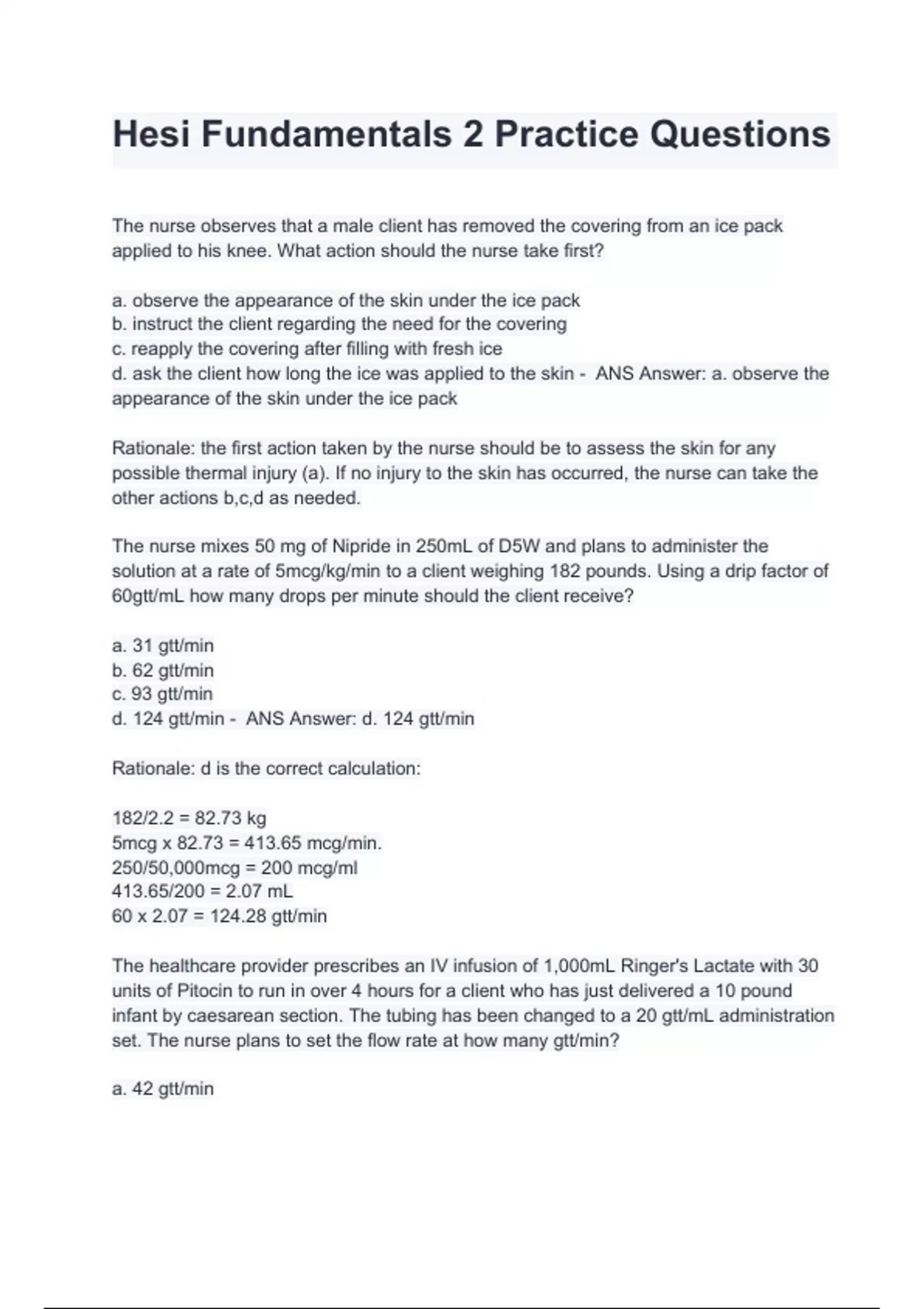 Test Bank for Hesi Fundamentals 2 Practice Questions and Answers with Rationales (A+ GRADED 100% VERIFIED)