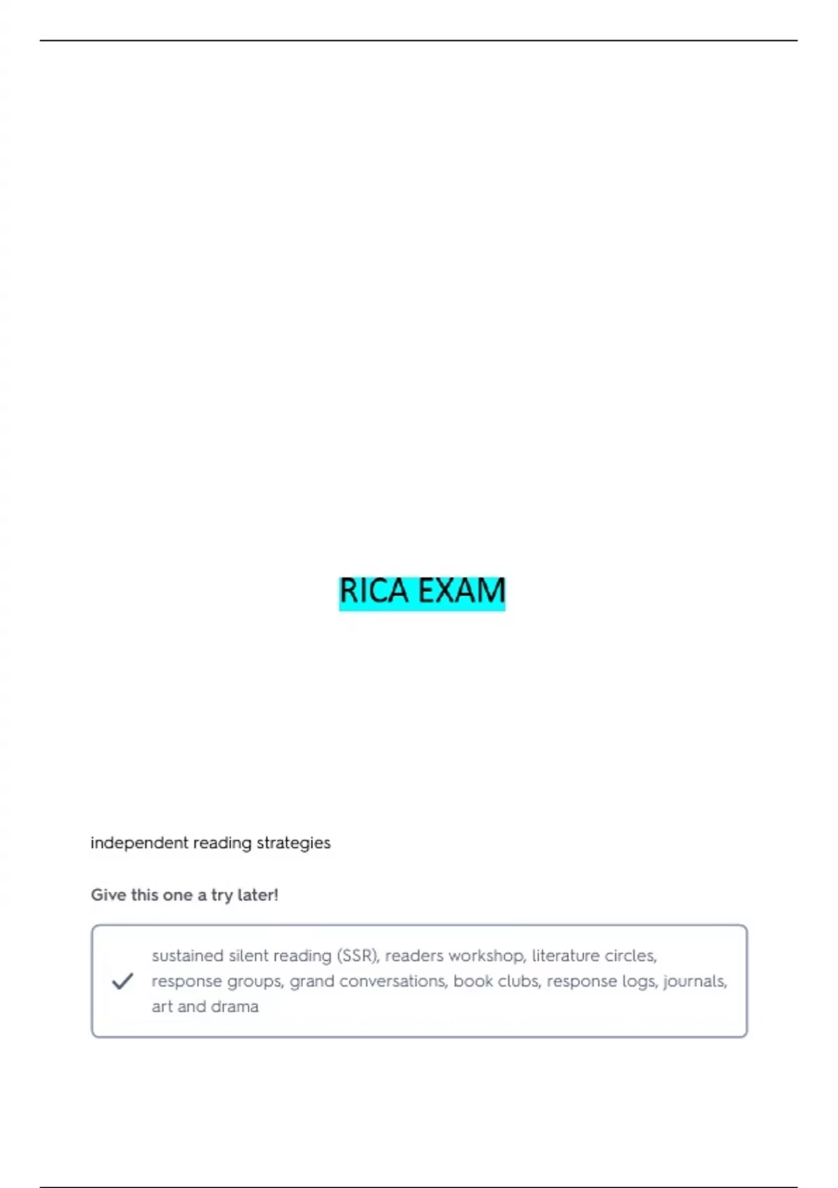 RICA SUBTEST 1 QUESTIONS AND CORRECT ANSWERS GRADED A+