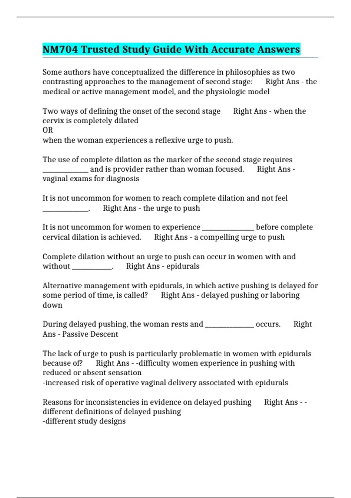 NM704 Trusted Study Guide With Accurate Answers
