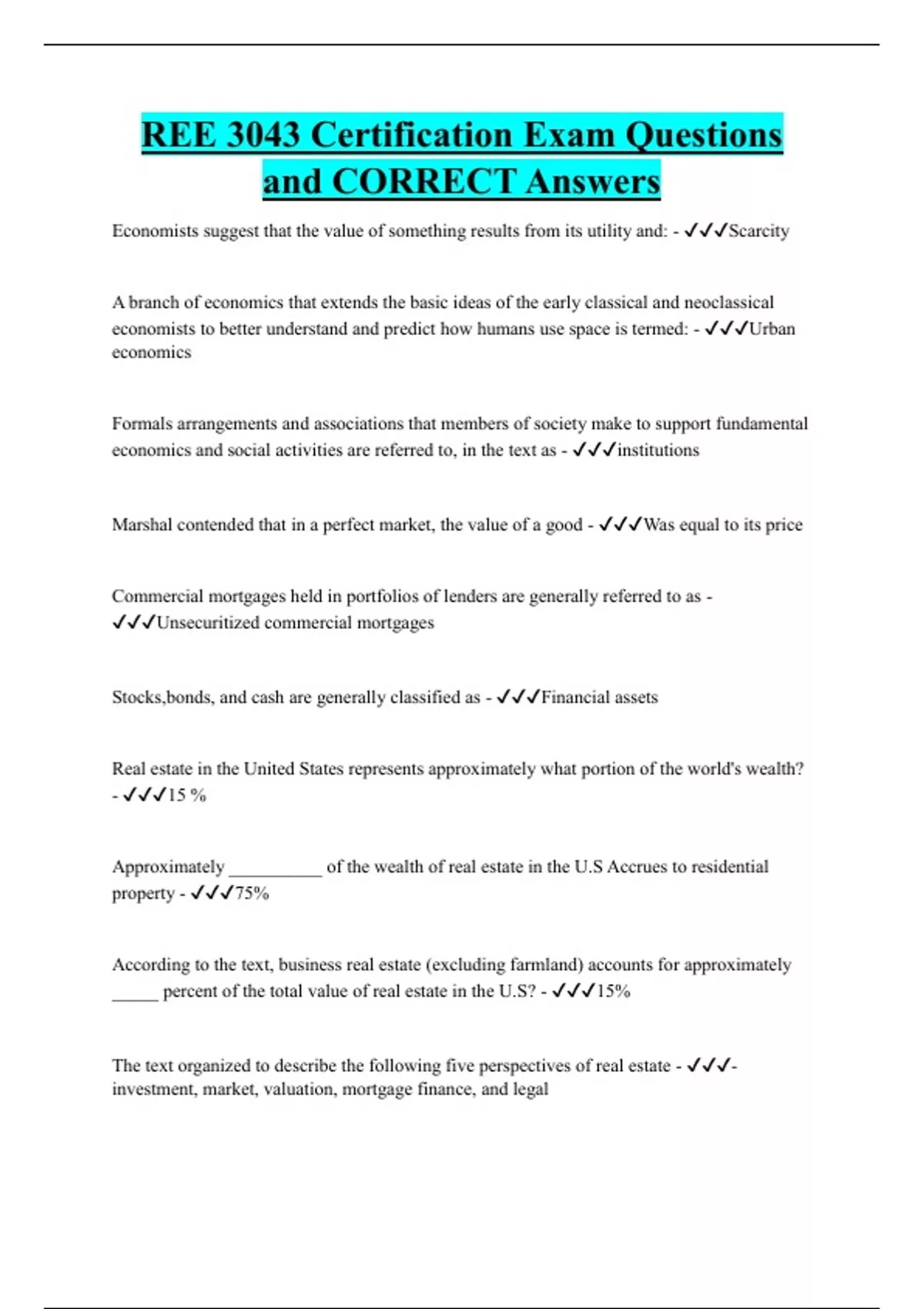 REE 3043 Bundled Exam Questions WITH CORRECT Answers