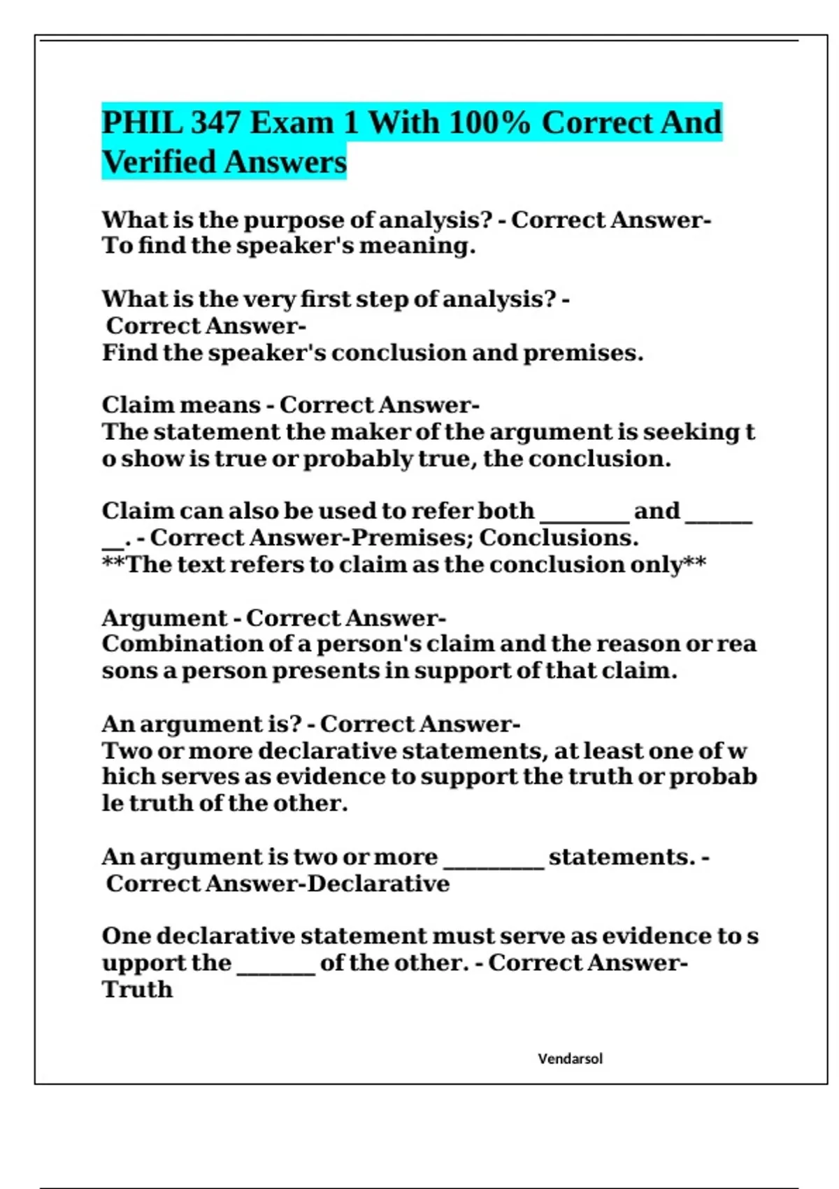 Phil 347 Week 4 Exam With 100% Correct And Verified Answers PHIL 347 Exam 1 With 100% Correct And Verified Answers PHIL 347N Week 4 Exam With 100% Correct And Verified Answers Phil 347 Week 4 Checkpoint Exam With 100% Correct And Verified Answers Chamberlain: Philosophy Final Exam With 100% Correct And Verified Answers