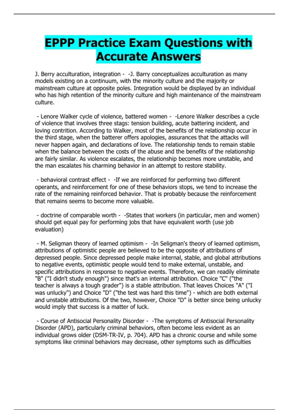 EPPP Sample Exam Qs and A’s |100% Scores