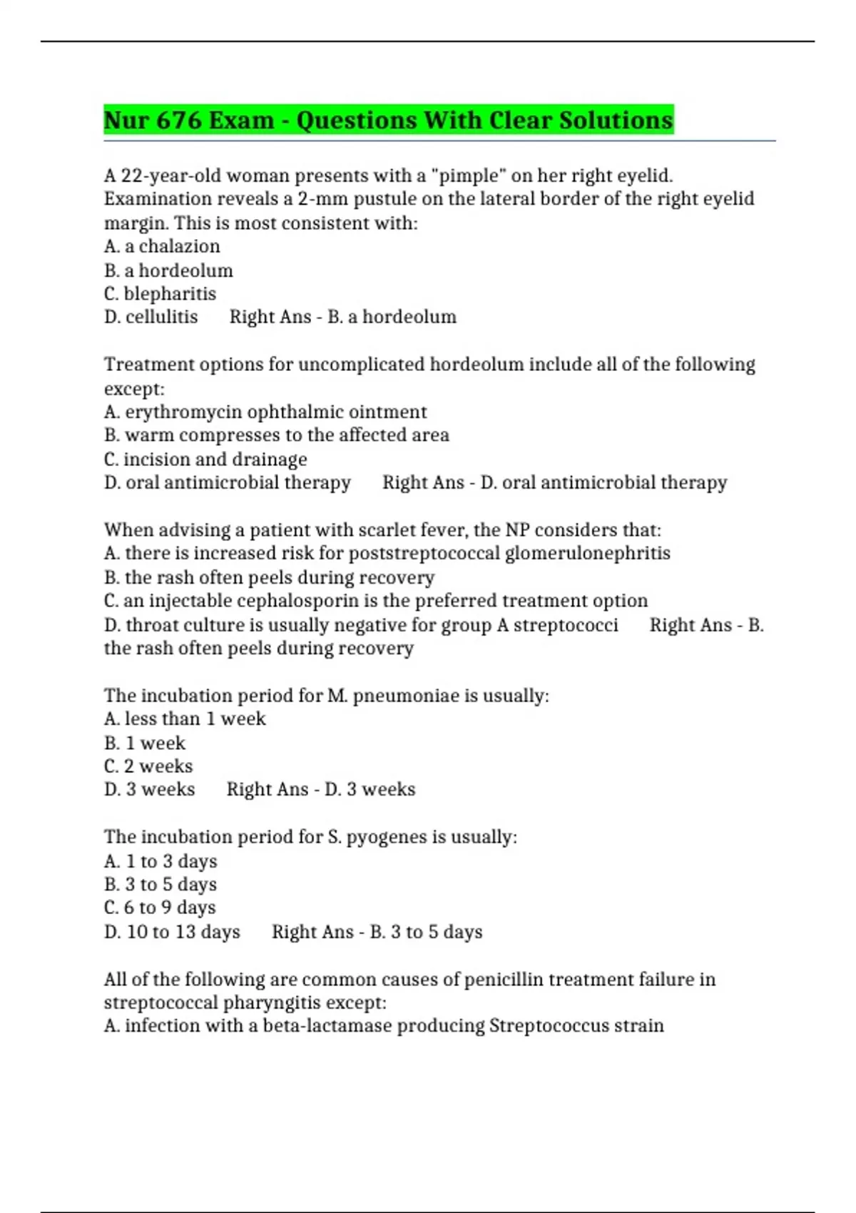 BUNDLE::- NUR 676 EXAMS