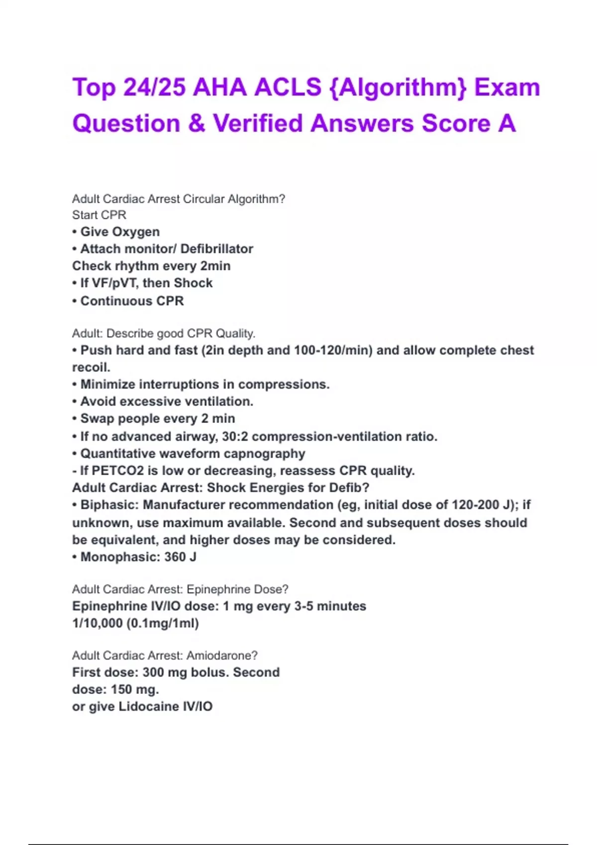 24/25 ACLS AHA TEST EXAM WITH Q&A VERIFIED ANSWERS A GRADED Top 24/25 AHA ACLS {Algorithm} Exam Question & Verified Answers Score A 24/25 AHA ACLS EXAM QUESTIONS ANSWERS CORRECT ANSWERS SCORE A 2024/2025 ACTUAL AHA ACLS EXAM Q&A VERIFIED ANSWERS 100% GRADED A