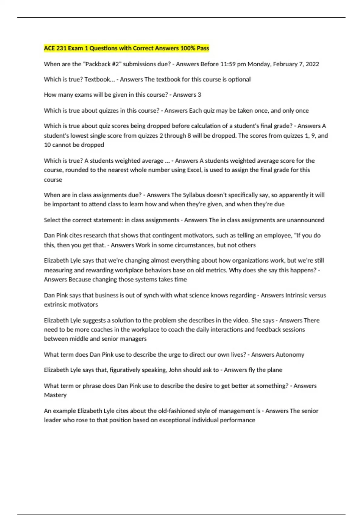 ACE 231 Bundled Exams 1-3 Answered Correctly Latest Version 2025/2026