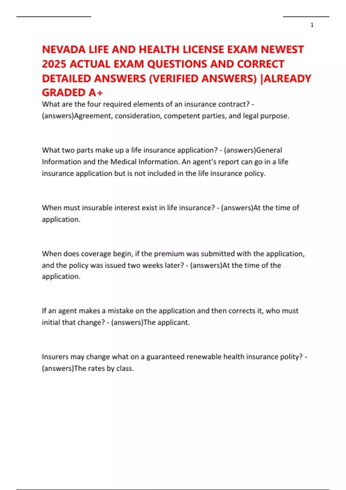 NEVADA LIFE AND HEALTH LICENSE EXAM NEWEST 2025 ACTUAL EXAM QUESTIONS AND CORRECT DETAILED ANSWERS (VERIFIED ANSWERS) |ALREADY GRADED A+