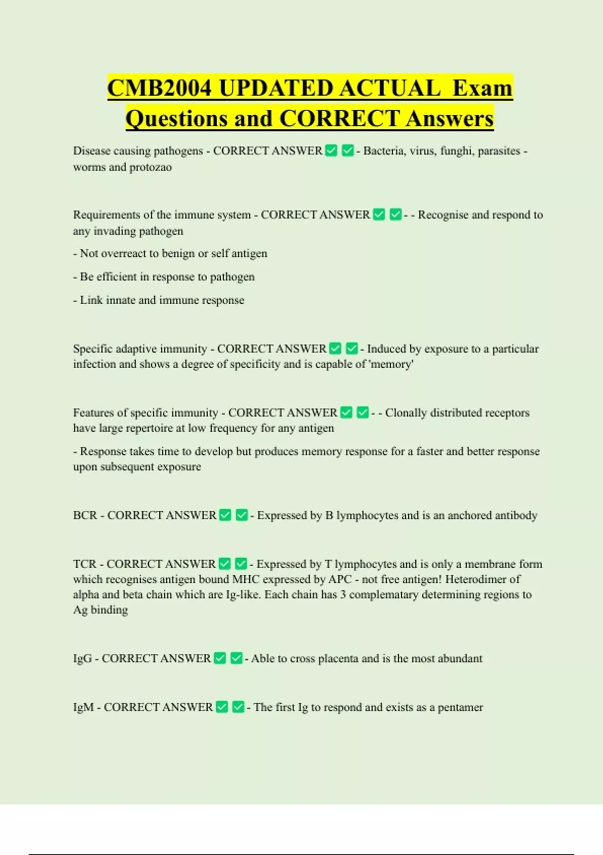 CMB2004 Bundled Exam Questions WITH CORRECT Answers