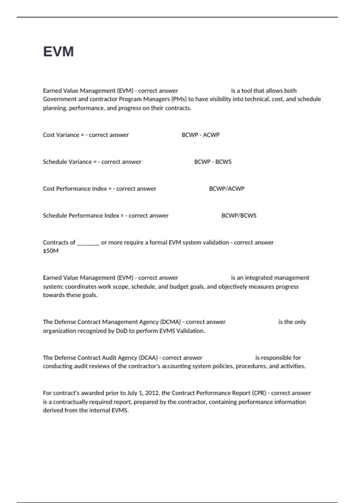 package deal of EVM Exam Bundle Correctly Answered.