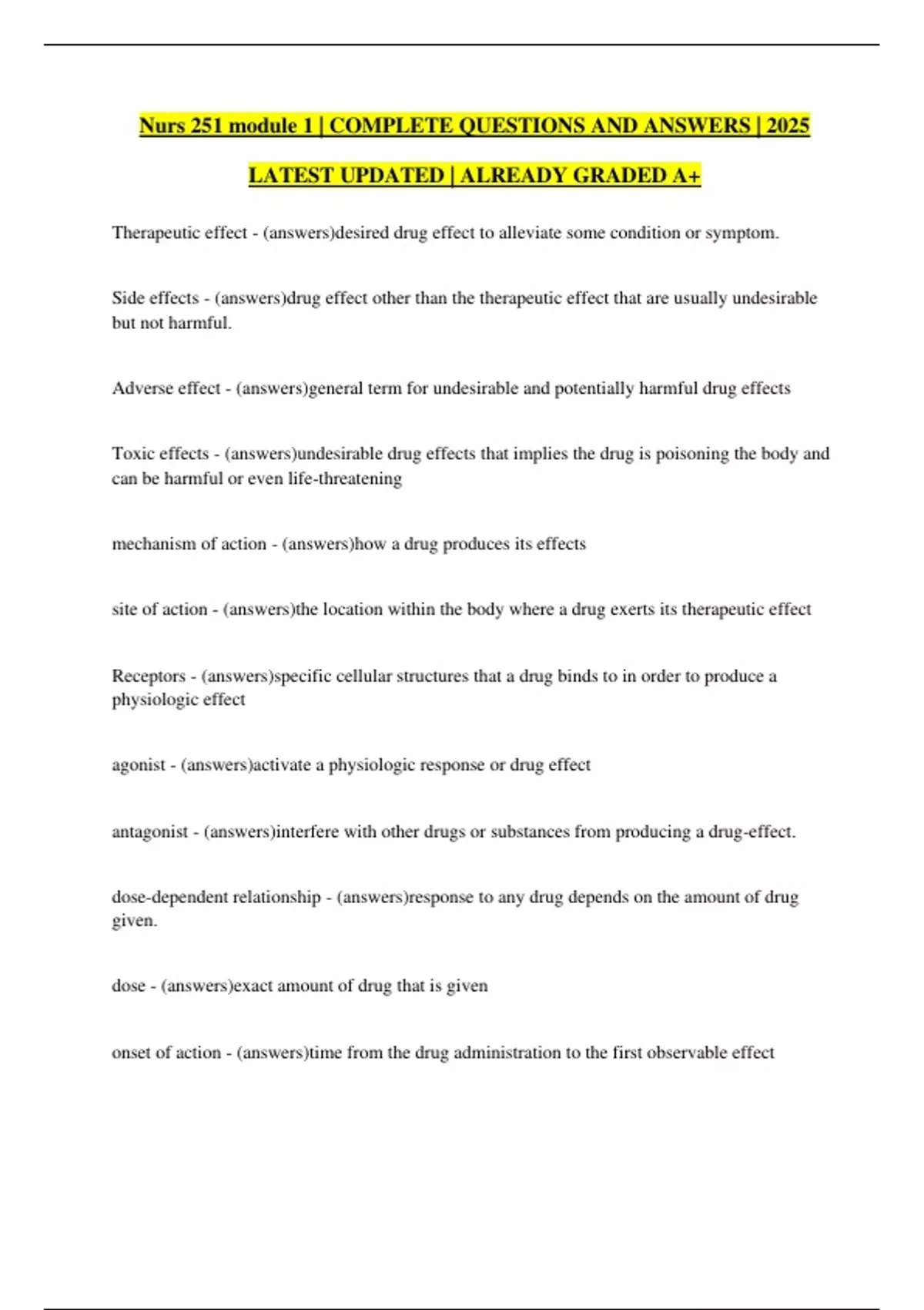 NURS 251 - Pharmacology Module 6 | COMPLETE QUESTIONS AND ANSWERS | 2025 LATEST UPDATED | ALREADY GRADED A+