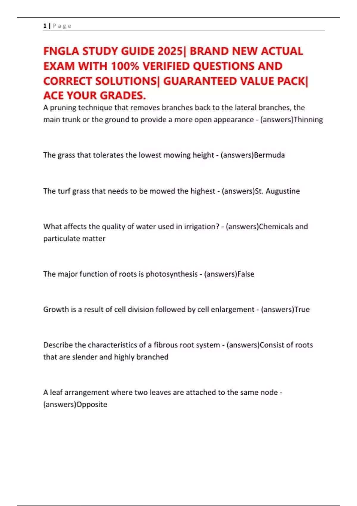 FNGLA STUDY GUIDE 2025| BRAND NEW ACTUAL EXAM WITH 100% VERIFIED QUESTIONS AND CORRECT SOLUTIONS| GUARANTEED VALUE PACK| ACE YOUR GRADES.