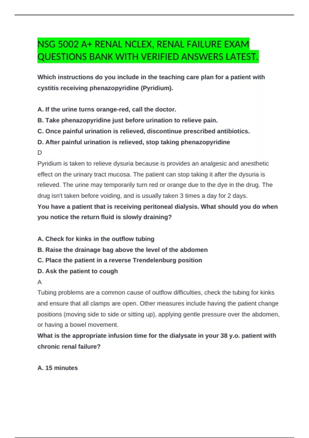 NSG 5002 A+ RENAL NCLEX, RENAL FAILURE EXAM QUESTIONS BANK WITH VERIFIED ANSWERS LATEST