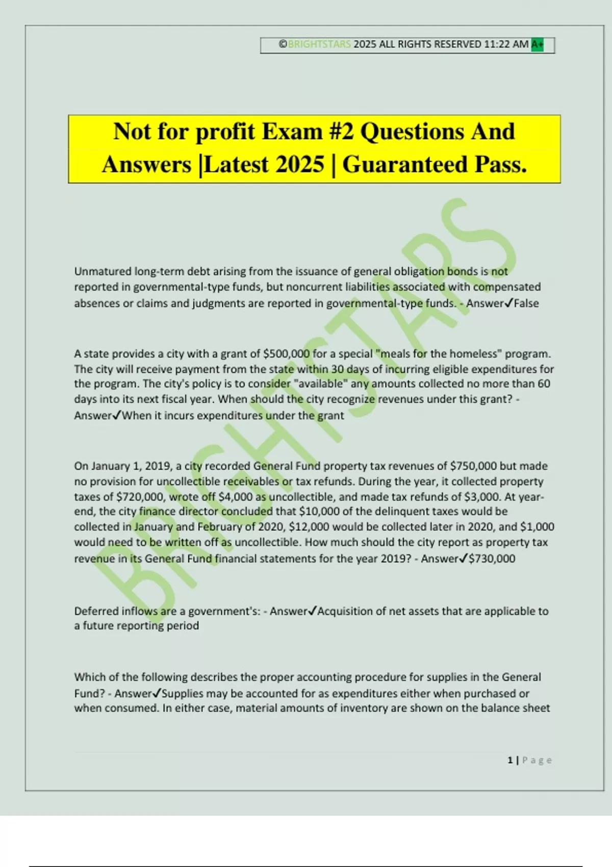 Not-for-Profit Exam Questions And Answers |Latest 2025 | Guaranteed Pass.
