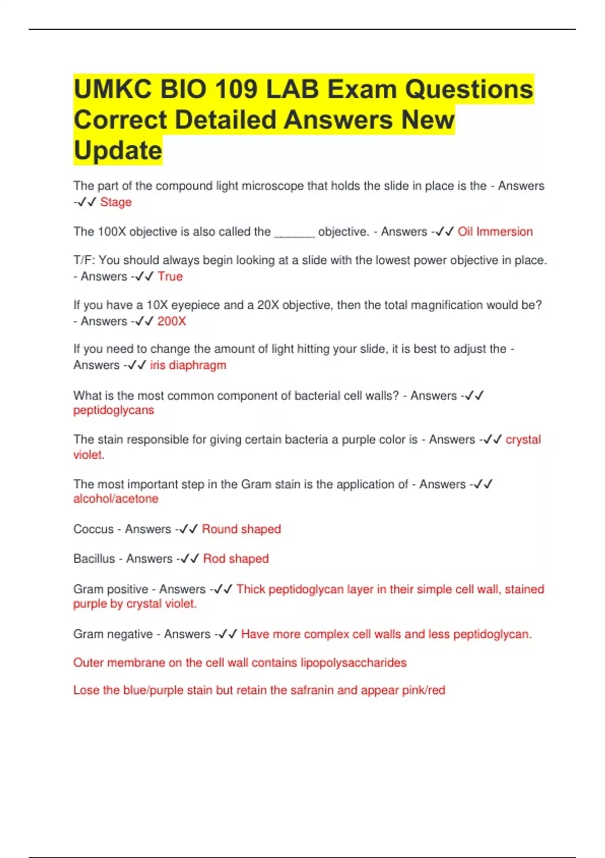 Bundle For UMKC BIO 109 LAB Exam Qustions Correct Detailed Answers New Update