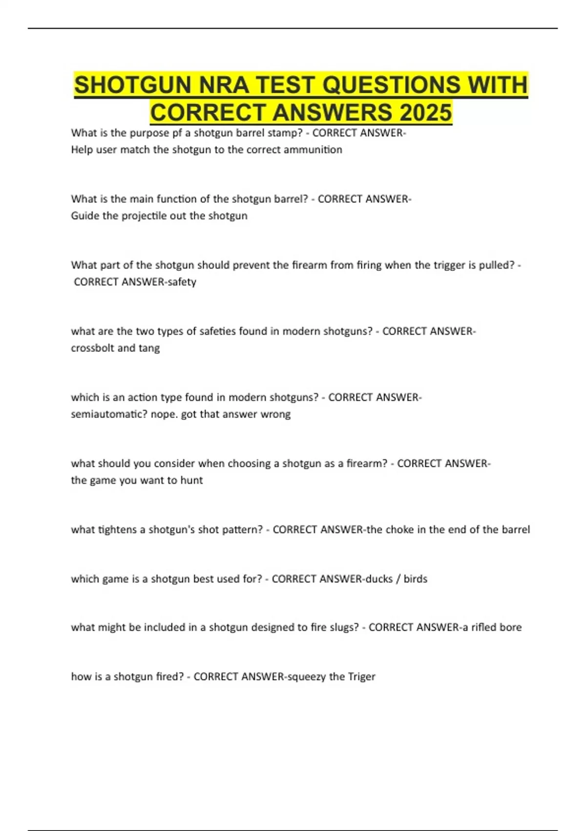 SHOTGUN NRA TEST QUESTIONS WITH CORRECT ANSWERS 2025